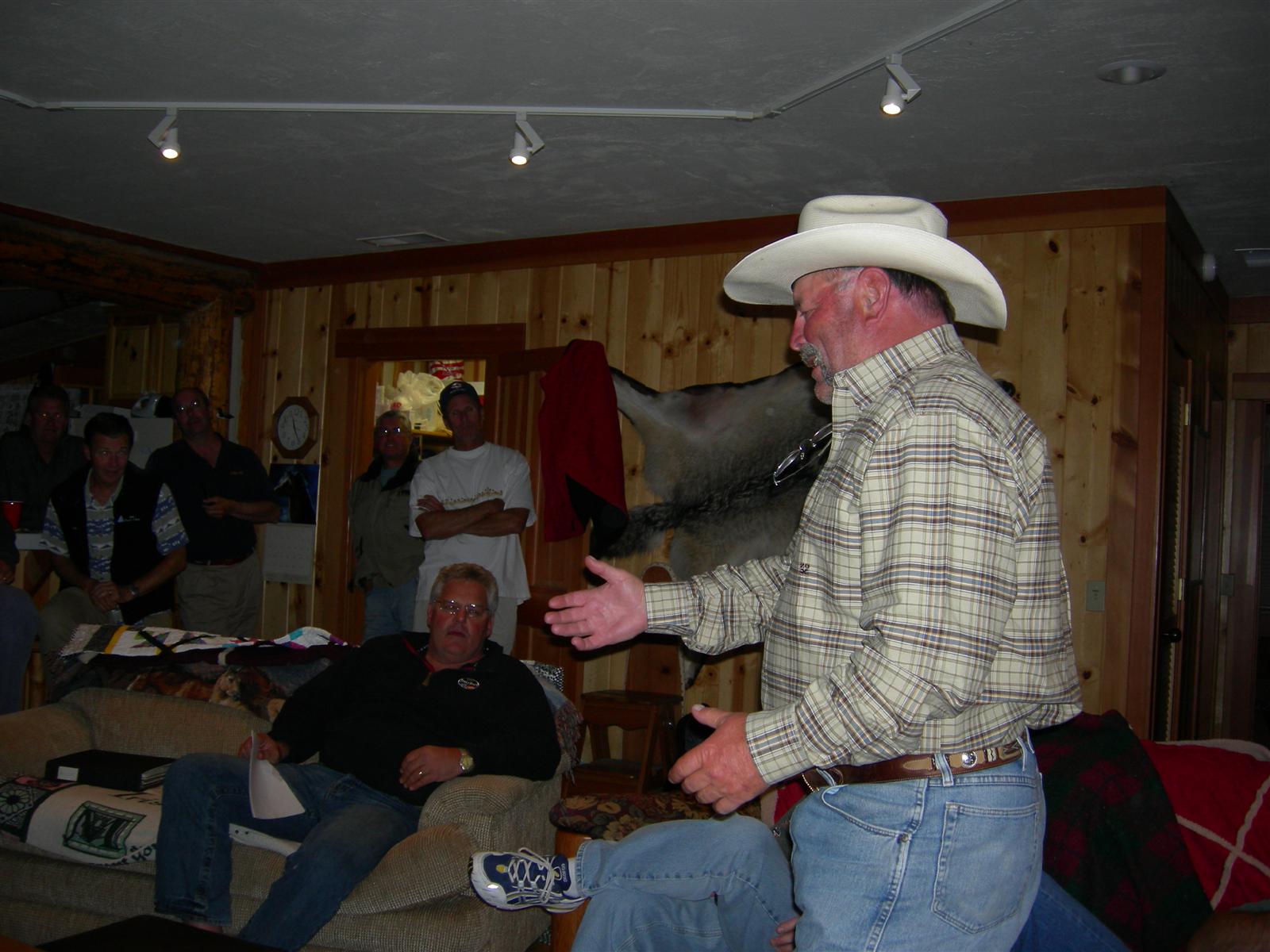 Saturday evening's steak dinner was followed by stories, jokes, and even Fox-ditties led by Gussie.